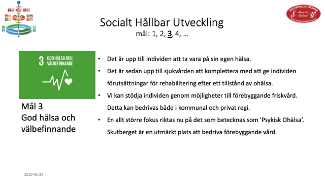 Jag har som initiativtagare skrivit några korta meningar om varje mål. Cirklarna ska ifrågasätta dessa, justera dem, ta bort dem och/eller komma fram till annan beskrivning. Fokus ska vara att konkretisera vad dessa mål betyder i praktiken för området Skutberget.